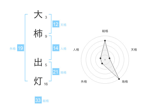 大柿 出灯さんの総格は33画の4点!
