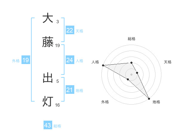 大藤 出灯さんを姓名の画数から五運を鑑定