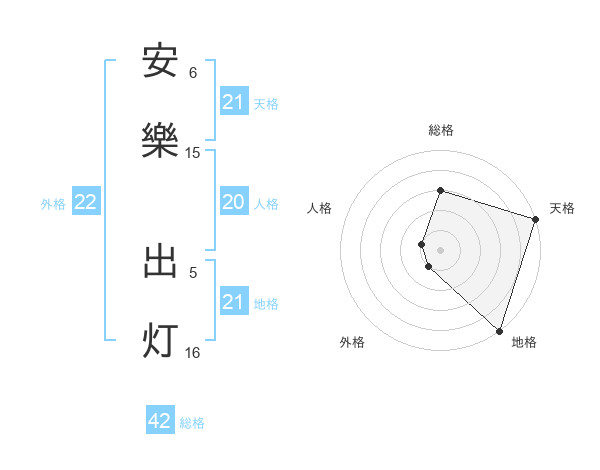 安樂 出灯さんの外格は22画の1点!