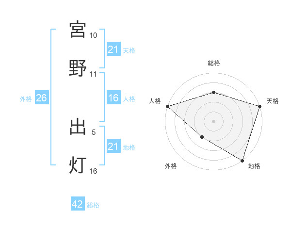 宮野 出灯さんの地格は21画の5点!