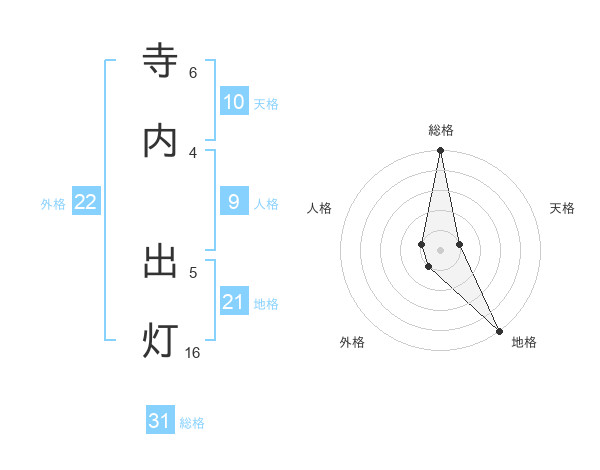 寺内 出灯さんを姓名の画数から五運を鑑定