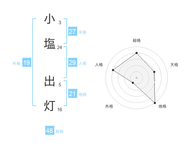 小塩 出灯さんを姓名の画数から五運を鑑定