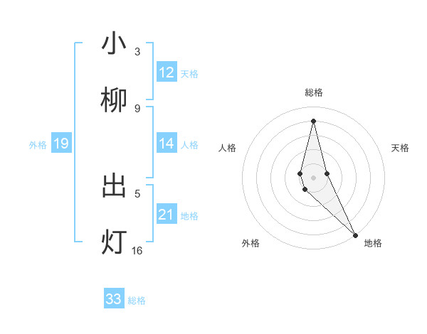 小柳 出灯さんを姓名の画数から五運を鑑定