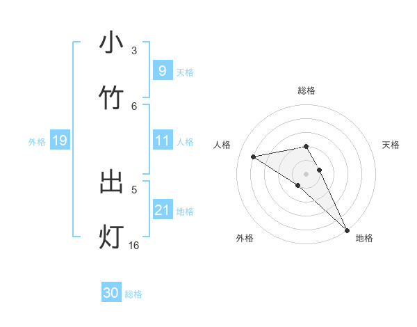 小竹 出灯さんの総格は30画の2点!