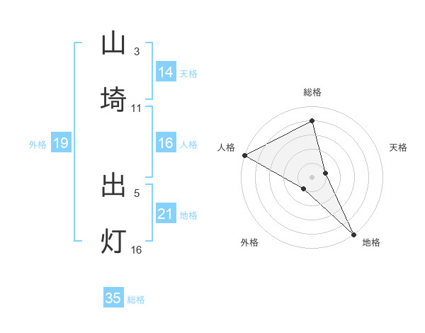 山埼 出灯さんを姓名の画数から五運を鑑定