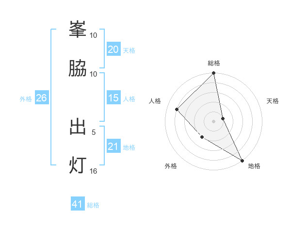 峯脇 出灯さんを姓名の画数から五運を鑑定