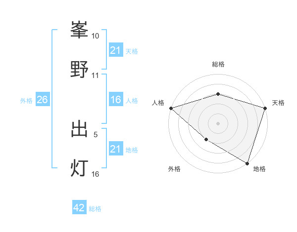 峯野 出灯さんの総格は42画の3点!