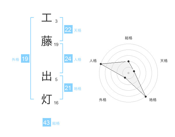 工藤 出灯さんを姓名の画数から五運を鑑定