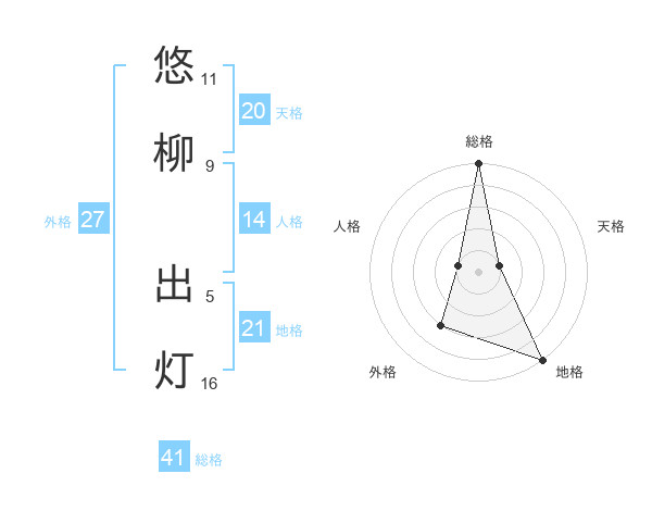 悠柳 出灯さんを姓名の画数から五運を鑑定