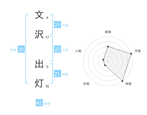 文沢 出灯さんを姓名の画数から五運を鑑定