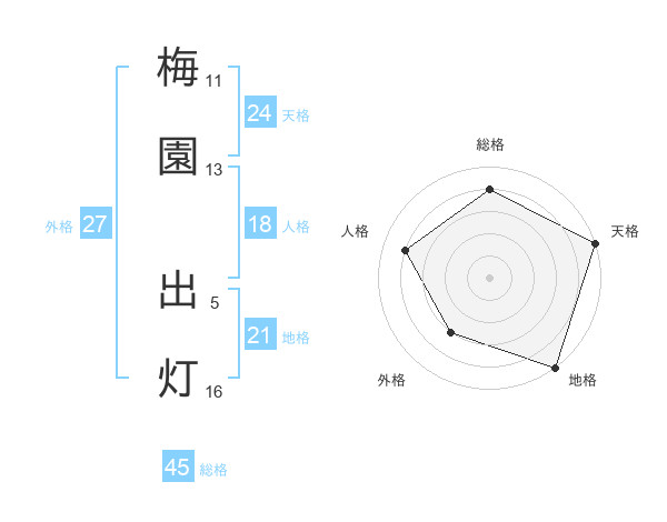 梅園 出灯さんの総格は45画の4点!