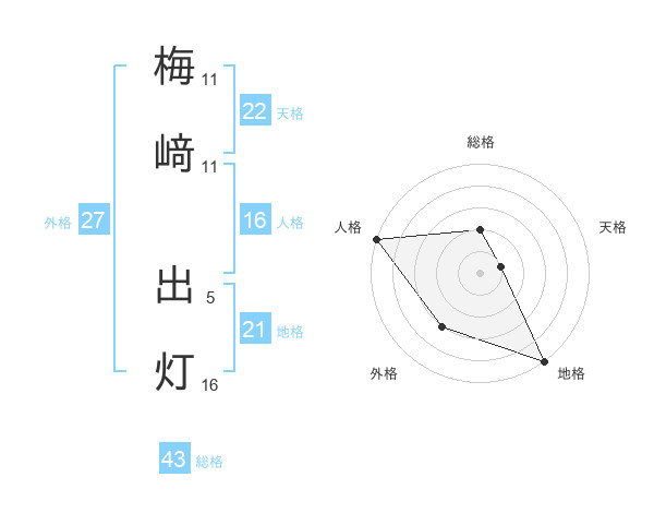 梅﨑 出灯さんを姓名の画数から五運を鑑定