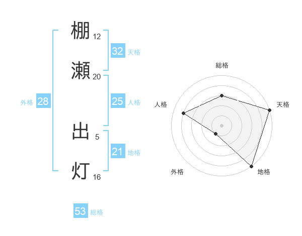 棚瀬 出灯さんの総格は53画の3点!