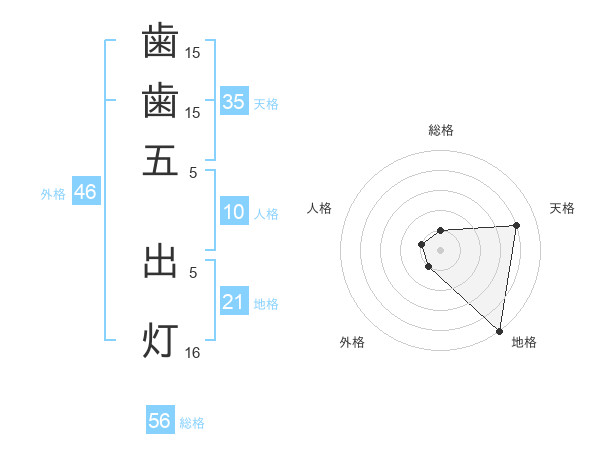 歯歯五 出灯さんを姓名の画数から五運を鑑定