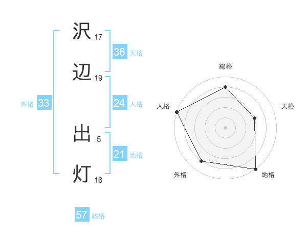 沢辺 出灯さんを姓名の画数から五運を鑑定