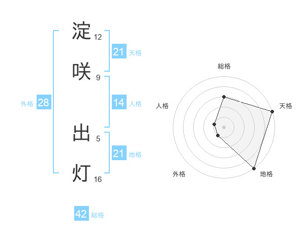 淀咲 出灯さんを姓名の画数から五運を鑑定