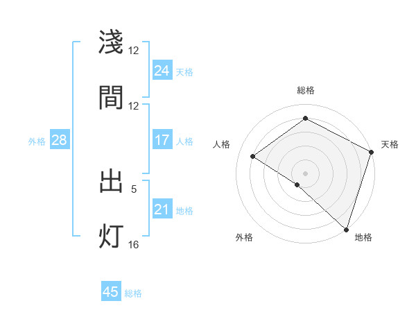 淺間 出灯さんの総格は45画の4点!