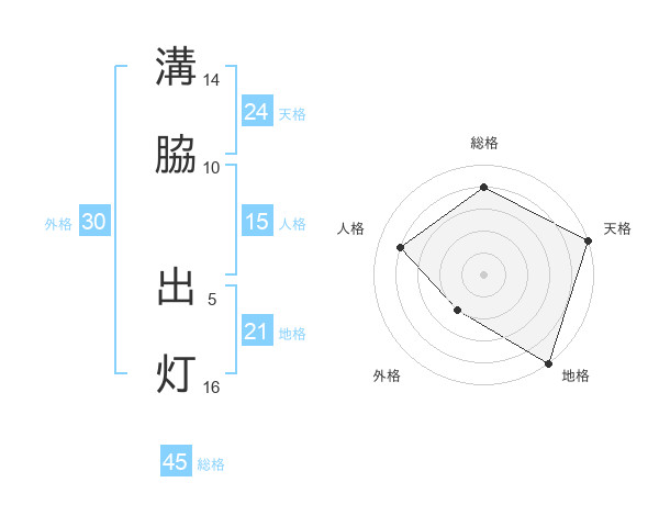 溝脇 出灯さんの総格は45画の4点!