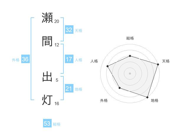 瀬間 出灯さんの天格は32画の5点!