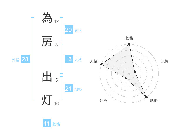 為房 出灯さんの総格は41画の5点!