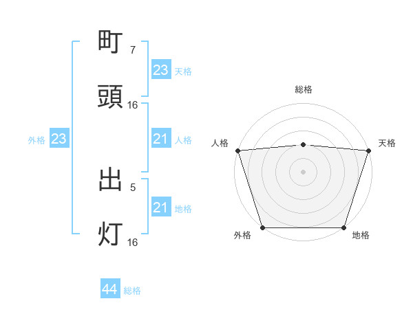 町頭 出灯さんを姓名の画数から五運を鑑定