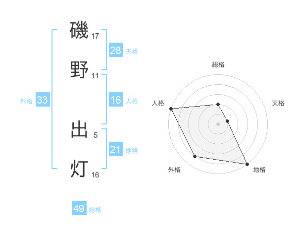 磯野 出灯さんの総格は49画の2点!