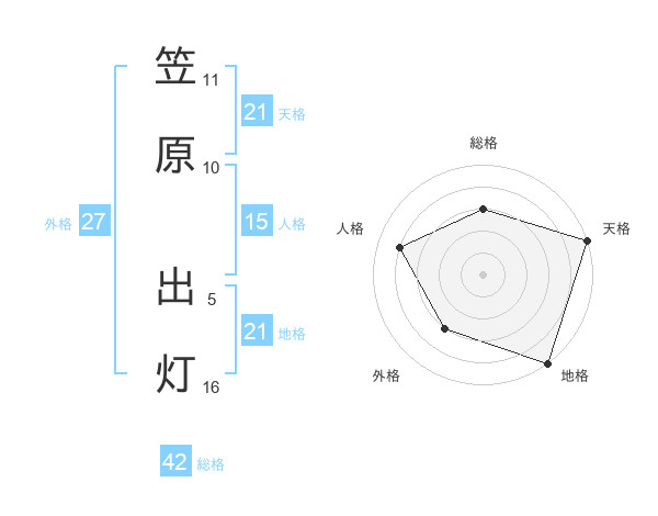 笠原 出灯さんを姓名の画数から五運を鑑定