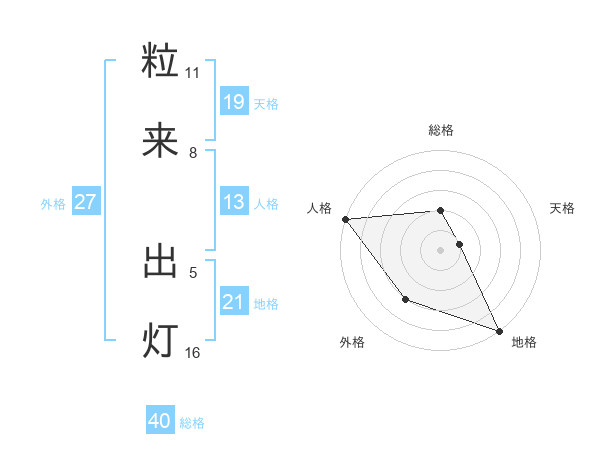 粒来 出灯さんの総格は40画の2点!