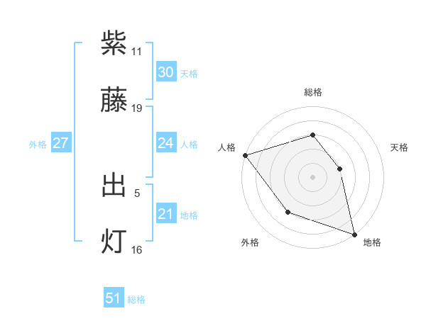 紫藤 出灯さんを姓名の画数から五運を鑑定