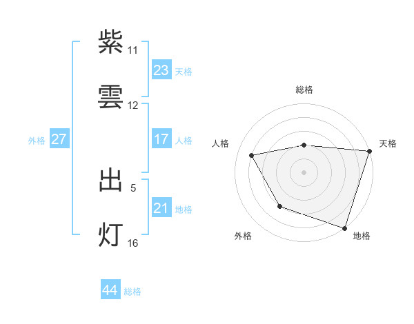 紫雲 出灯さんの天格は23画の5点!