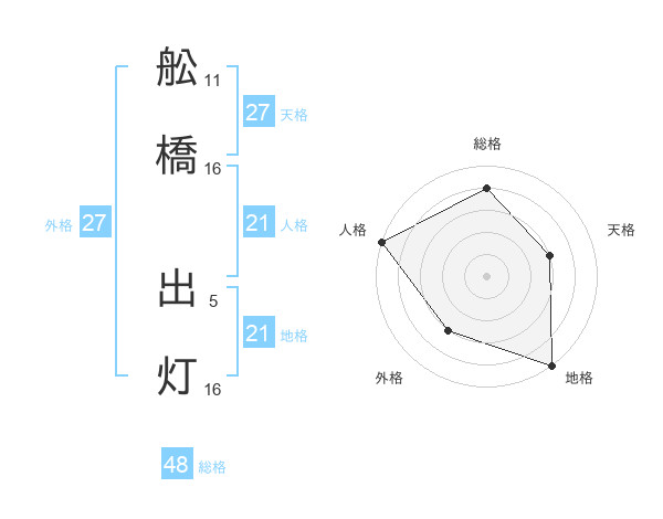 舩橋 出灯さんを姓名の画数から五運を鑑定