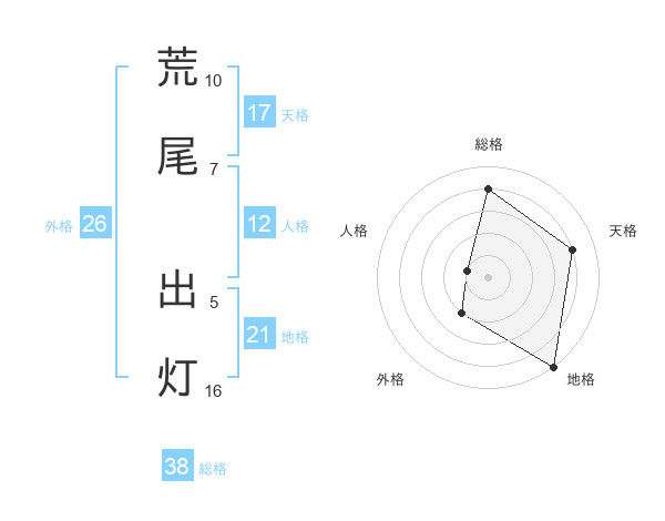 荒尾 出灯さんの総格は38画の4点!