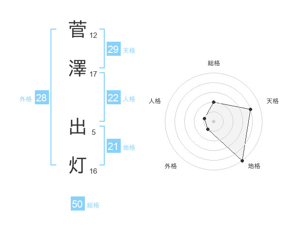 菅澤 出灯さんを姓名の画数から五運を鑑定