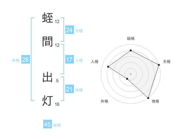 蛭間 出灯さんを姓名の画数から五運を鑑定