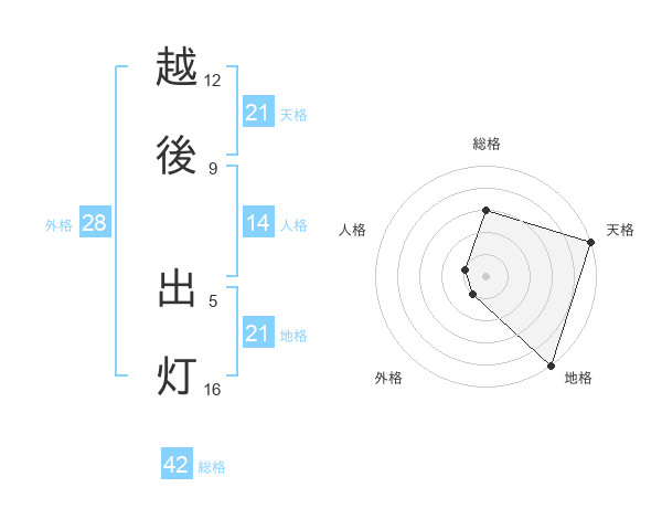 越後 出灯さんの地格は21画の5点!