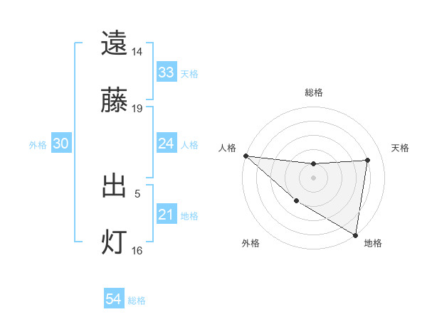 遠藤 出灯さんの総格は54画の1点!