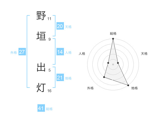 野垣 出灯さんを姓名の画数から五運を鑑定