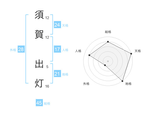 須賀 出灯さんを姓名の画数から五運を鑑定