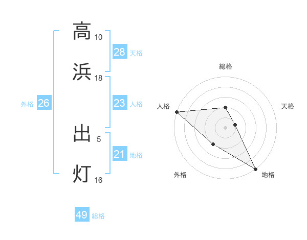高浜 出灯さんの総格は49画の2点!