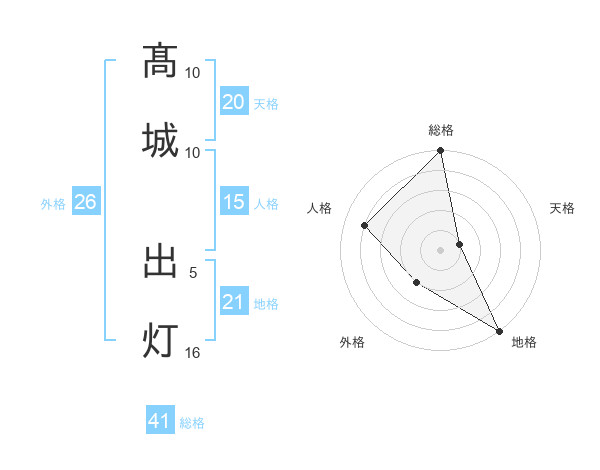 髙城 出灯さんの総格は41画の5点!
