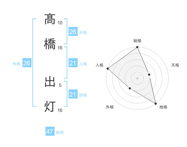 髙橋 出灯さんを姓名の画数から五運を鑑定