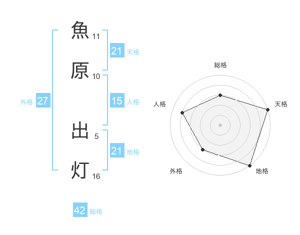 魚原 出灯さんを姓名の画数から五運を鑑定
