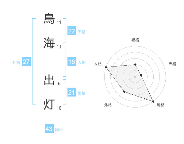 鳥海 出灯さんの総格は43画の2点!