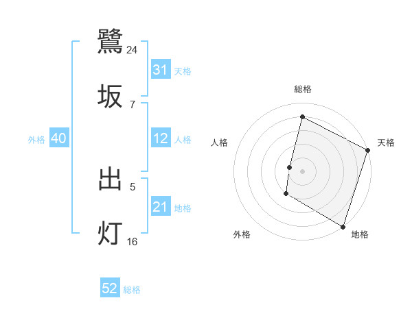 鷺坂 出灯さんの総格は52画の4点!
