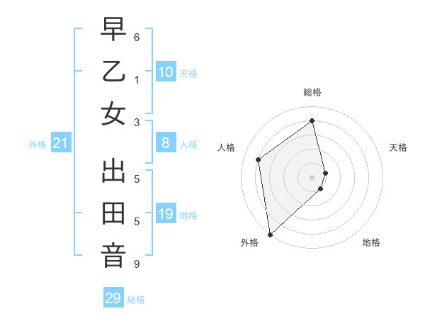 早乙女 出田音さんの外格は21画の5点!