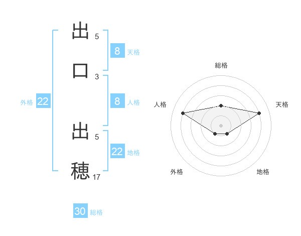 出口 出穂さんの外格は22画の1点!