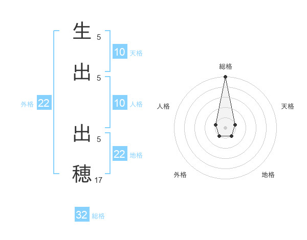 生出 出穂さんの外格は22画の1点!