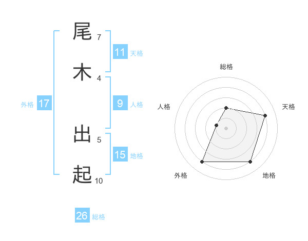尾木 出起さんの総格は26画の2点!