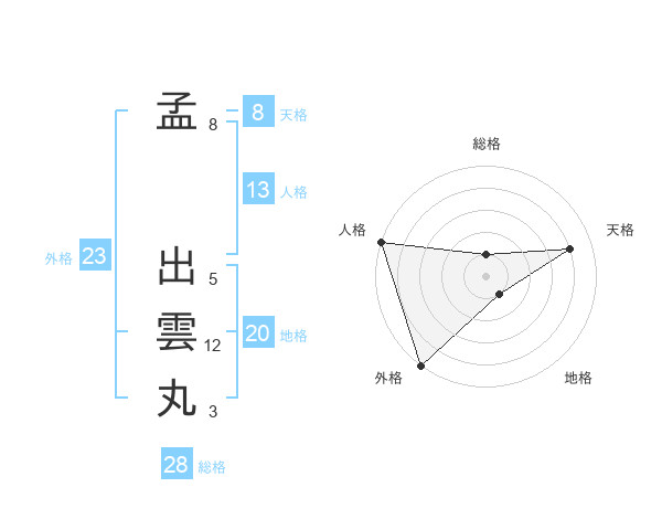 孟 出雲丸さんの総格は28画の1点!