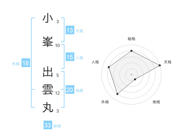 小峯 出雲丸さんを姓名の画数から五運を鑑定